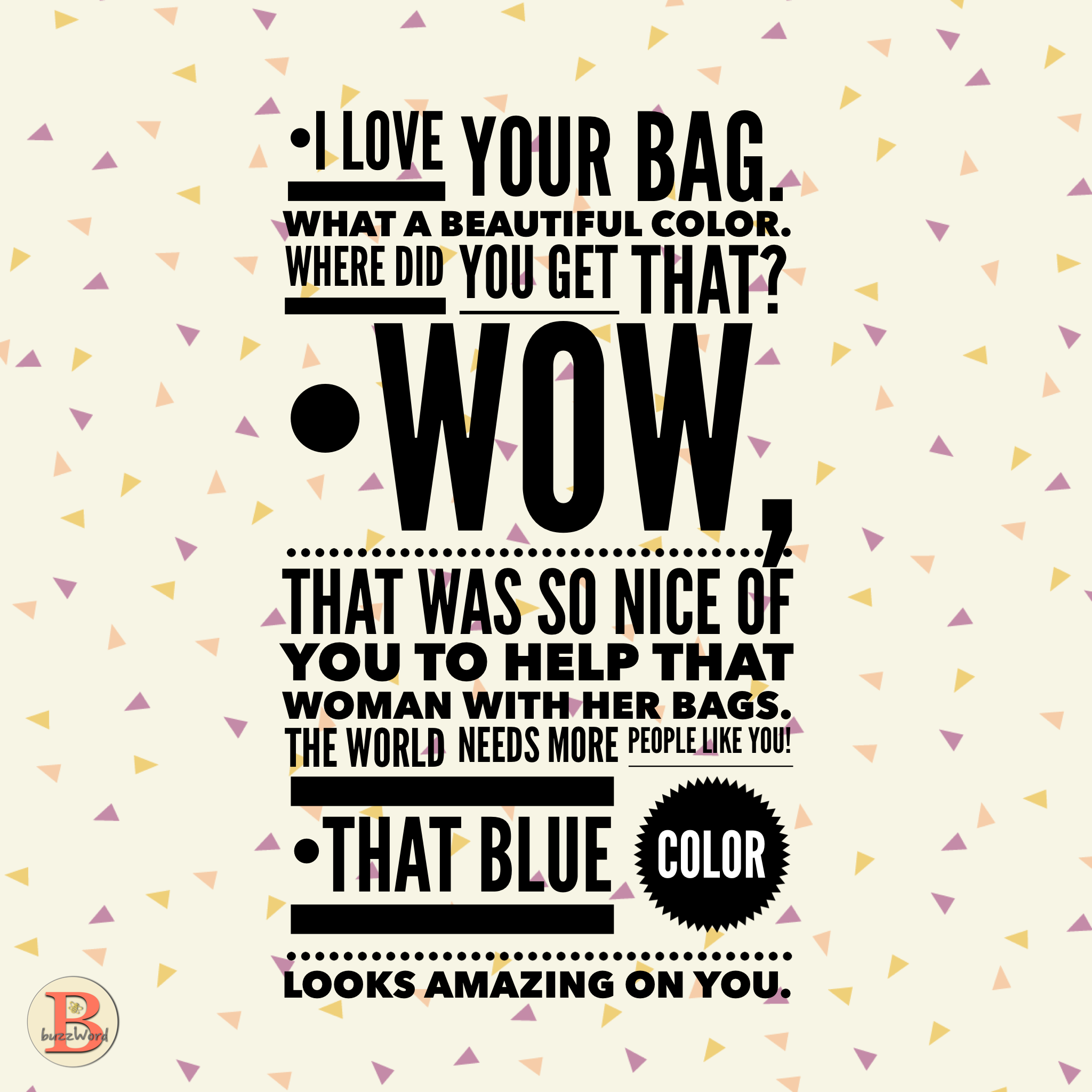 Next time, try to ditch the small talk and use one of these ideas below. Notice how you feel. Does the person react differently to you? Does the conversation elevate? Do you feel better or worse? Was it more or less comfortable?